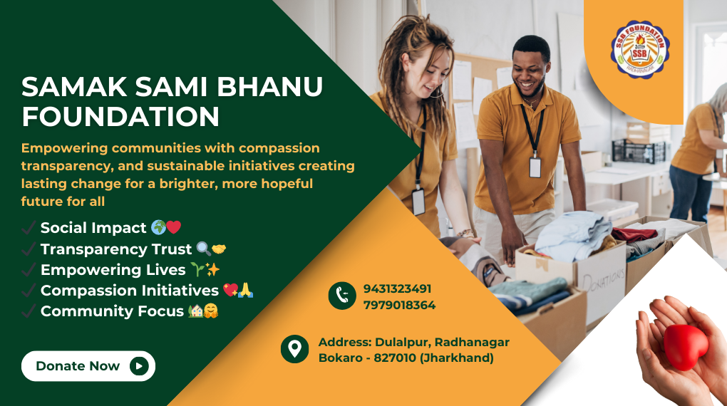 SSBF (SAMAK SAMI BHANU FOUNDATION) NGO in Jharkhand focuses on community development, skill training, and social welfare, particularly in rural and tribal areas. Their key initiatives include: