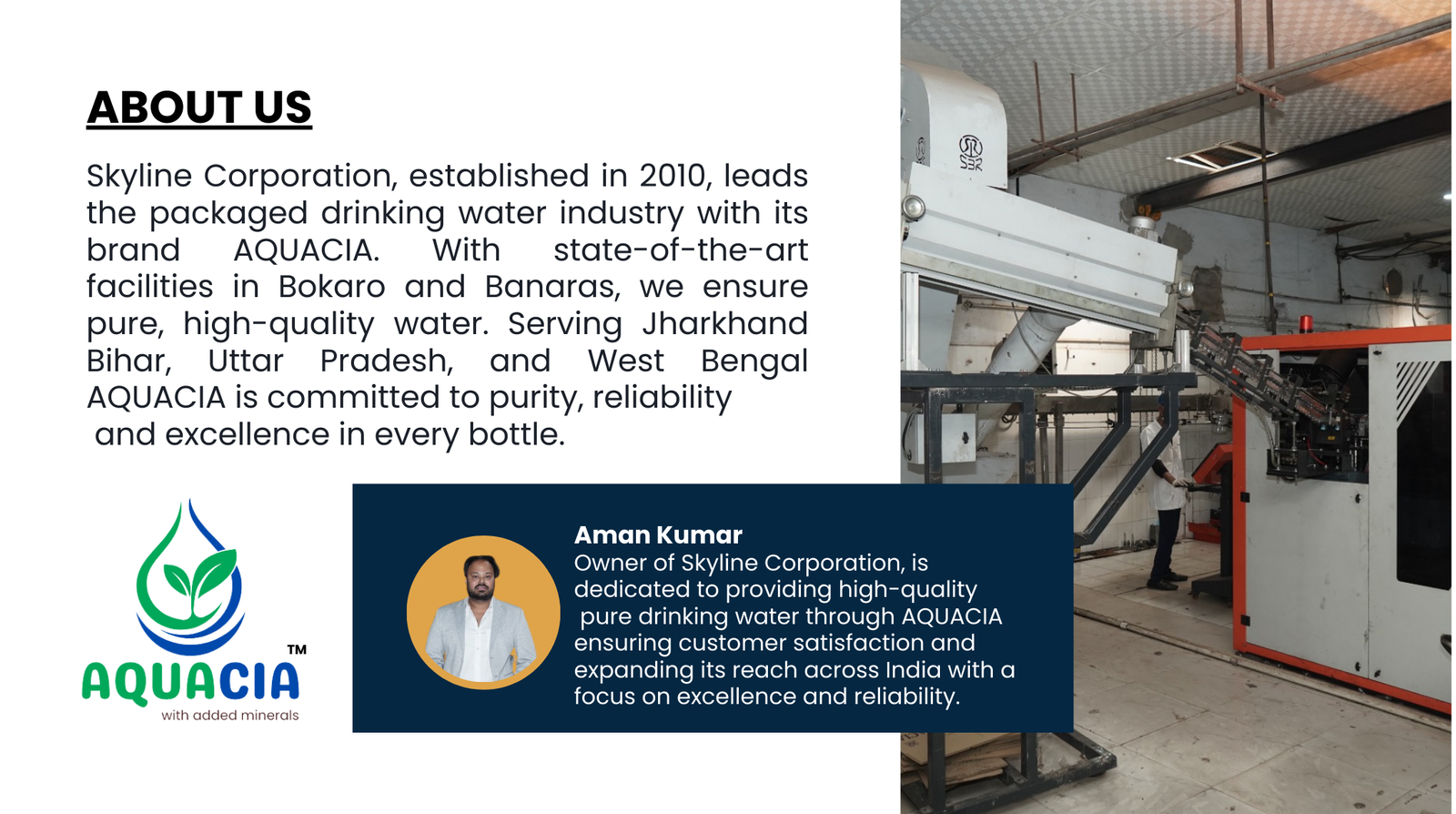 Experience the difference of premium packaged mineral water with Aquacia. It’s not just water; it’s a promise of purity, taste, and wellness in every bottle.