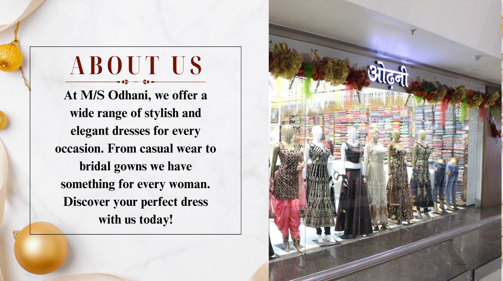 At M/S Odhani, we take pride in offering an extensive collection of high-quality female garments that blend elegance with modern trends. Located in the heart of Bokaro, we are dedicated to providing women with a wide range of stylish and comfortable outfits for every occasion. From traditional sarees like Banarasi silk and cotton to chic western dresses, gowns, and party wear, our store caters to all tastes and preferences. Our goal is to ensure that every woman feels confident and beautiful in our carefully curated selections. Visit us today to experience fashion that speaks to you!