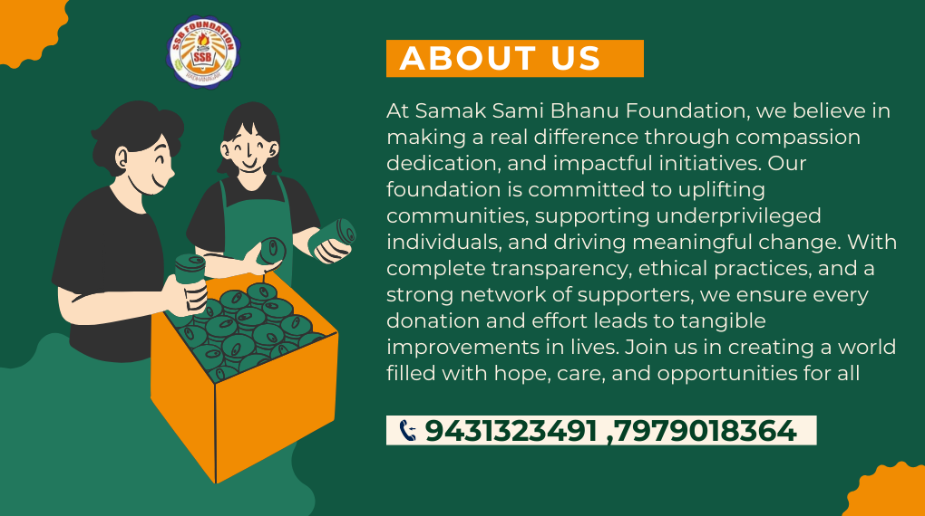 SAMAK SAMI BHANU FOUNDATION -Non-Governmental Organizations (NGOs) in India play a crucial role in supporting underprivileged communities by providing education, healthcare, food, shelter, and vocational training. Organizations like Akshaya Patra serve mid-day meals to schoolchildren, while Goonj recycles urban waste into resources for rural development. NGOs such as Smile Foundation and CRY focus on child welfare and education, whereas HelpAge India supports the elderly. Many NGOs also work in disaster relief, women empowerment, and environmental conservation. Their efforts bridge gaps in government welfare schemes, bringing hope and opportunities to millions in need. Volunteering and donations further strengthen their impact.